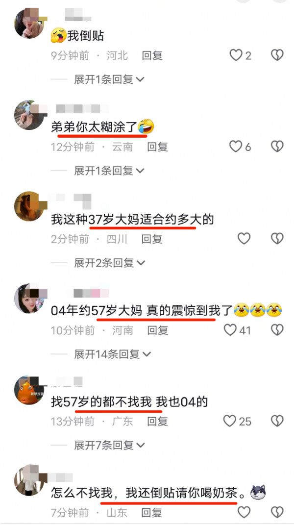 - 三观震碎: 一些网友对57岁大妈与20岁小伙约会感到震惊,认为两人的年龄差距太大,无法理解他们的关系。
