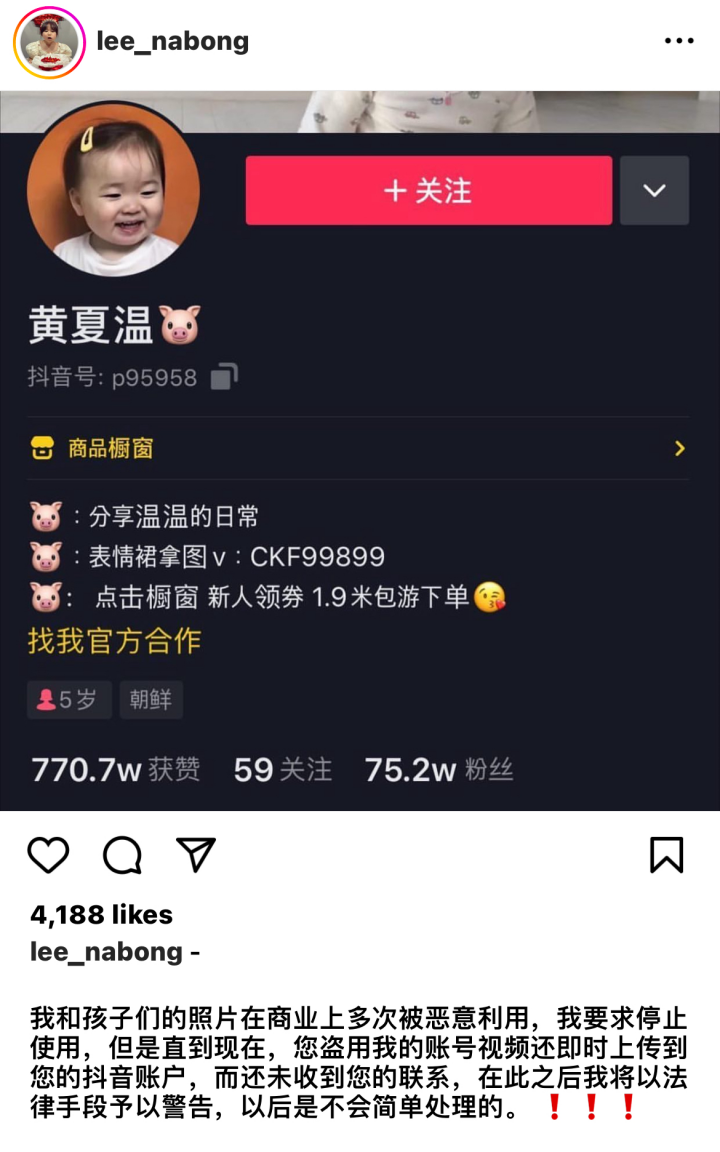 某音上有人靠冒充她拥有了75.2w粉丝,收获了770w的点赞⬇️
