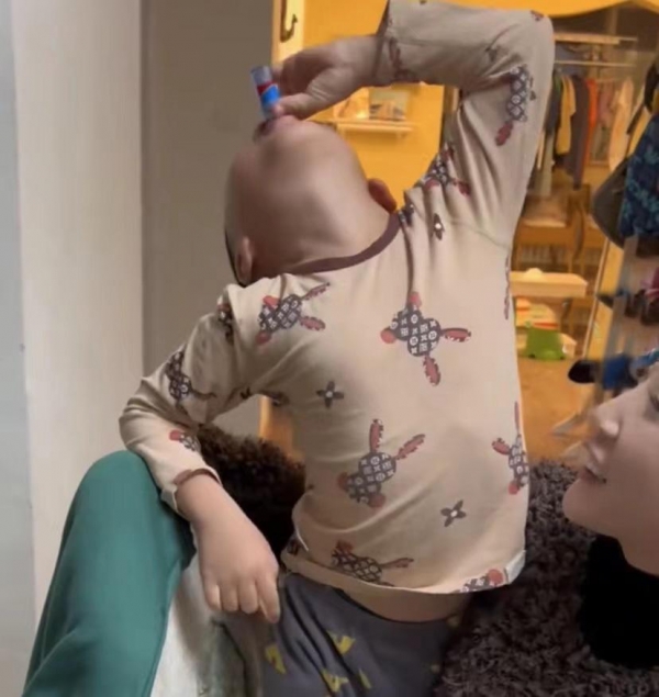 本期素材来自吉林,这是一个普通的城市居民家庭,一个年约5-6岁的小男孩,手里拿着一瓶药剂,正仰着脖子,往嘴里倒去。