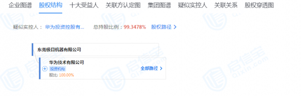 股东信息显示,该公司由华为技术有限公司全资持股。