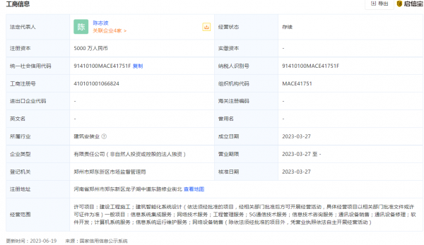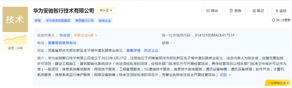 除了此次成立的新公司,3月27日,华为安驰智行技术有限公司成立,法定代表人为陈志波,注册资本5000万元人民币,注册地位于河南省郑州市,经营范围包括建设工程施工;建筑智能化系统设计;信息系统集成服务;网络技术服务;工程管理服务;5G通信技术服务;信息技术咨询服务等。股东信息显示,该公司由华为技术有限公司全资持股。