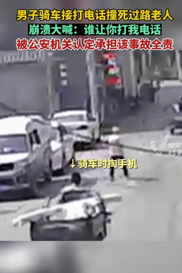 男子骑车接电话撞死老人后崩溃大喊:谁让你打我电话