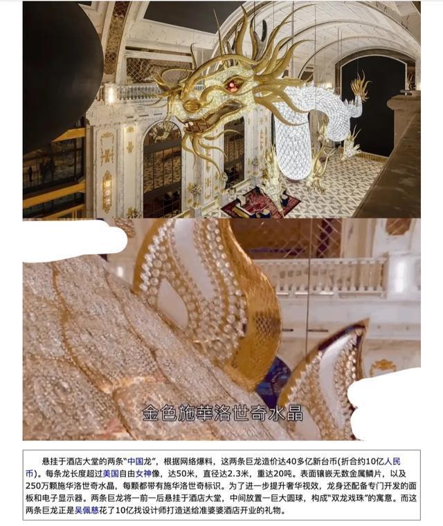 吴佩慈花了数亿,讨好准婆婆崔丽杰送上的施华洛世奇水晶龙