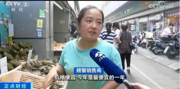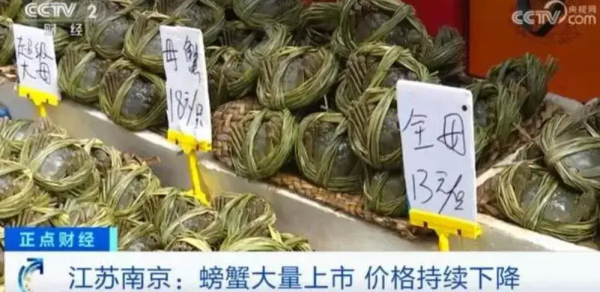 据报道,郑州等地的大闸蟹价格较去年同期直接腰斩。2.5两母蟹的价格从去年的120元每斤降至今年的65元每斤,3两母蟹从去年的140元每斤跌至今年的70元每斤。而在南京、上海等地的菜市场,大闸蟹的价格也普遍降低了20%左右。进入销售旺季的大闸蟹,产量和品质都有所提升,但售价却大幅下滑。10元就能买一只,螃蟹跌出白菜价。这个秋天,气温偏高,但早晚温差大,梭子蟹、大闸蟹的肥壮度在不断提升,但价格却出现了大跳水。