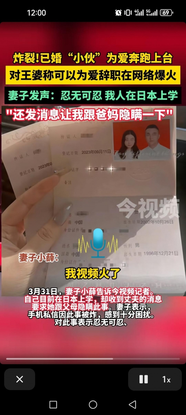 远在日本留学的妻子从朋友那里得知老公竟然在舞台上相亲,随后向媒体透露,两人早在去年就已经领证结婚,对方在相亲走红之后,甚至还要求自己和他一起隐瞒父母。