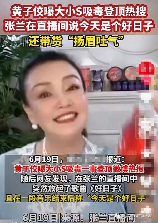 而黄子佼爆料发生后的当天下午,张兰被发现在自己的直播里放《好日子》,还卖起了"扬眉吐气"酒。