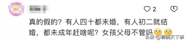 真的假的?有人四十都未婚,有人初二就结婚,都未成年赶啥呢?女孩父母不管吗