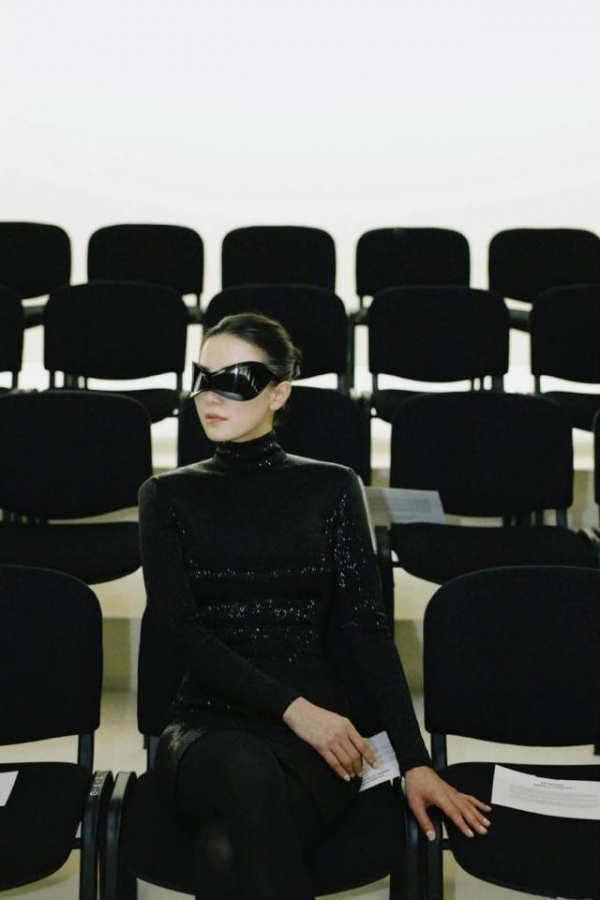 宋佳的这身造型,其实是两件套的造型,超短的紧身连衣裙长袖高领的造型,虽然没有露出一点的肌肤,但是视觉上却没有任何的沉闷感,加上垫肩的设计,让衣服的曲线感也更加的明显了。