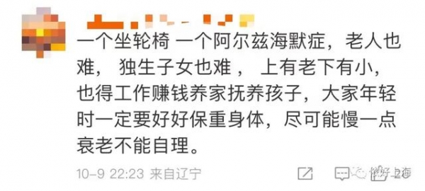 有网友表示理解,"家家有本难念的经",老人很难,独生子女也很难。