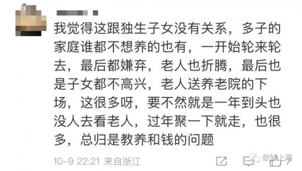 不过,也有网友认为,这和独生子女没有关系。现实中多子女的,也会把老人送进养老院。