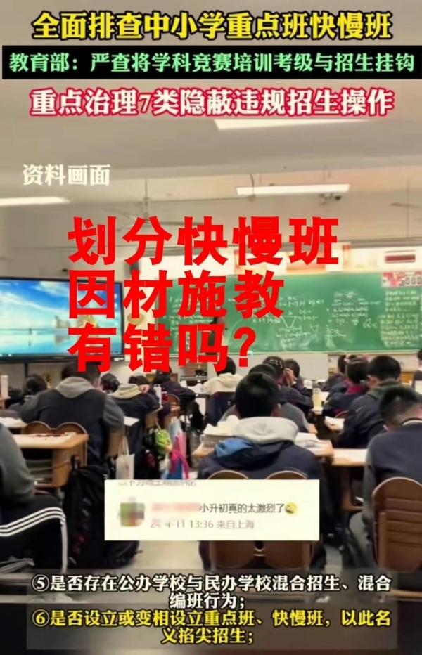 教育部2024最新通知,中小学禁设快慢班?你赞同吗?