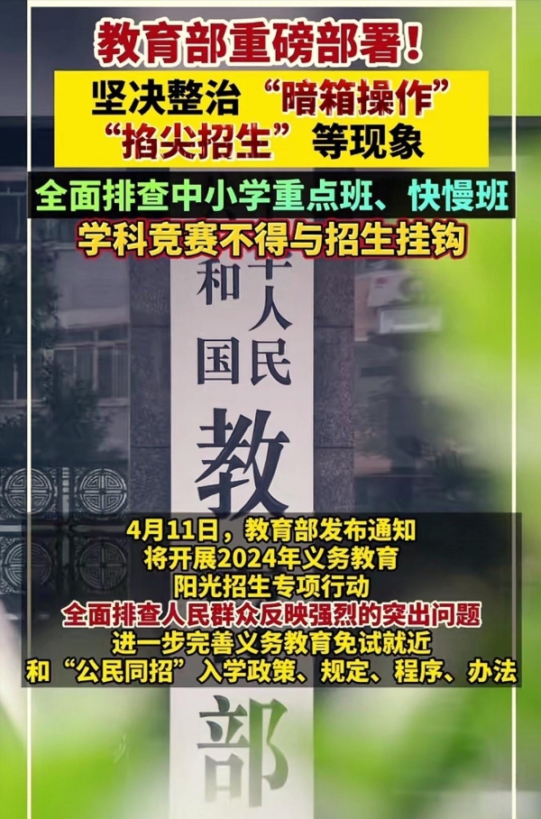 教育部重磅发布!全面排查中小学重点班、快慢班,严查将学科竞赛培训考级与招生挂钩
