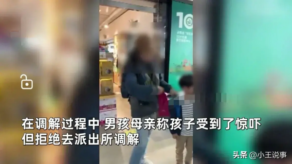执勤民警表示无法调解就去派出所调解,男孩母亲则表示不愿意去,并用手粗鲁的扒开女子正录视频的手,随及男孩奶奶则便道道歉边述说不易,企图道德绑架。女子当即表示没有针对男孩,只是男孩母亲的态度让她受不了。