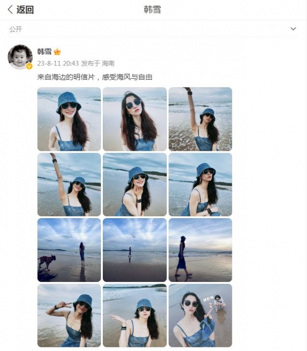 8月11日晚,韩雪在个人的社交平台上分享了一组美照,并为此配文:"来自海边的明信片,感受海风与自由",一时间也受到了网友们的广泛关注,而她定位的地方是在海南,这海边美照更是美得让人心动了。