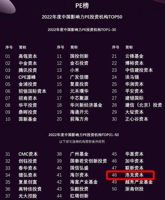 今年1月,洛克资本还获选金投榜"2022年度中国最受LP青睐PE投资机构TOP30""2022年度中国影响力PE投资机构TOP50",张颖豪则获得"2022年度中国影响力PE投资家TOP50"。今年2月,洛克资本再获母基金研究会"2022全球最具潜力基金TOP50"。