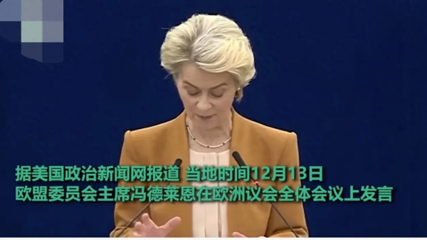 据美国政治新闻网报道,当地时间12月13日,欧盟委员会主席冯德莱恩在欧洲议会全体会议上发言。她呼吁欧洲各国要展示自信和团结的力量。