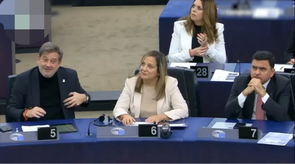 欧盟主席冯德莱恩在欧洲议会发言结束时,会场外竟然传来了阵阵狗叫,众人没忍住笑出声。