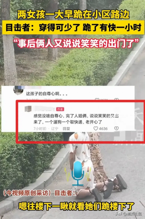女子早起发现楼下跪着两女孩:跪了有快一小时 ,事后俩人又说说笑笑的出门了