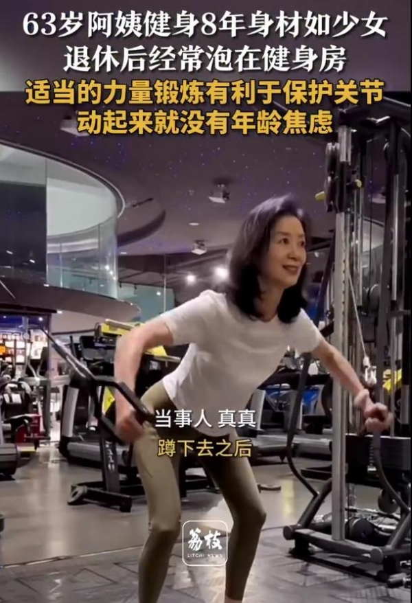 云南63岁阿姨"真真"已经健身8年了,退休后她也经常泡在健身房,身材如少女般纤细又有力量感。她表示,适当的力量锻炼有利于保护关节,动起来让她没有年龄焦虑。