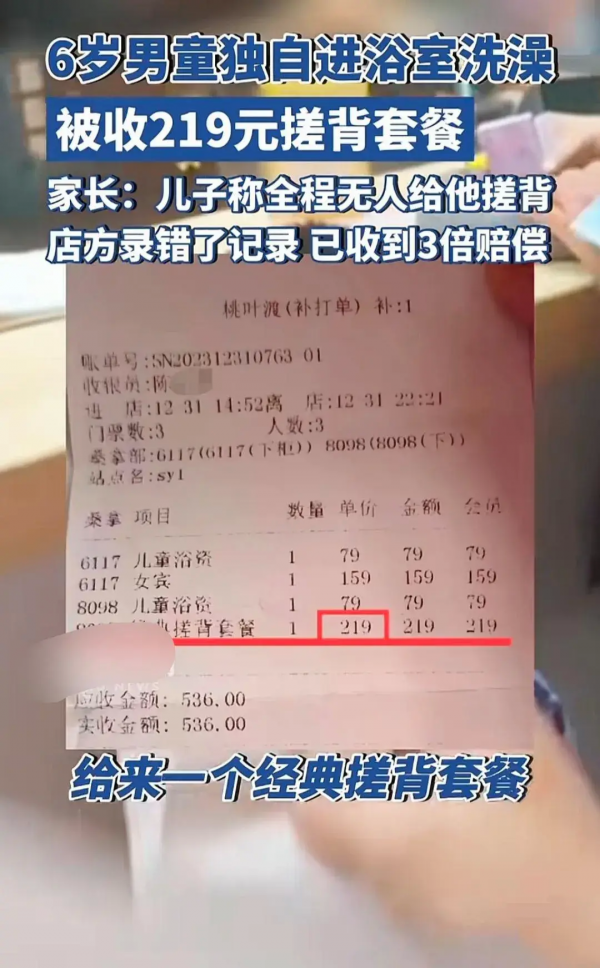 近日,一起关于南京一洗浴中心未经家长授权私自向6岁男童收取219元搓背费的新闻引发了广泛关注。据报道,该事件发生在南京市某洗浴中心,家长孙女士带着女儿和儿子前来洗浴。由于母亲让6岁的儿子独自戴手牌进男浴室洗澡,导致儿子意外"消费"了一个219元的搓背套餐。