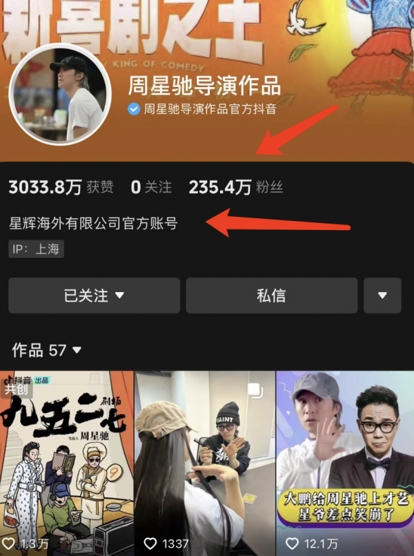 目前"周星驰导演作品"该账号粉丝数235万,更新内容主要为周星驰的日常相关动态。