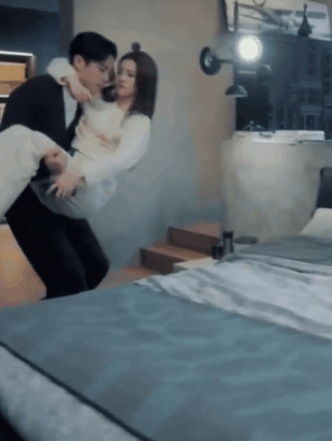 只见男主并不怎么轻松地公主抱起女主,然后走到床前跟扔垃圾似的将对方扔出去。