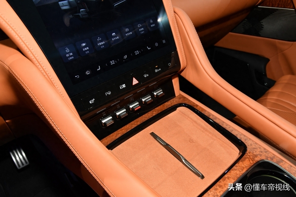 仰望U8配备了四辐方向盘,方向盘顶部还配有辅助驾驶提示灯,下方还可以用来调节驾驶模式和地形模式。中控屏下方带有实体按键以及控制拨杆,副仪表台上还配备了手机无线充电面板,并且还集成了车内扶手的设计。配置方面,仰望U8配备了由Nappa真皮包覆的智能随动座椅,还搭载了22个扬声器的证据系列Hi-End级音响系统。