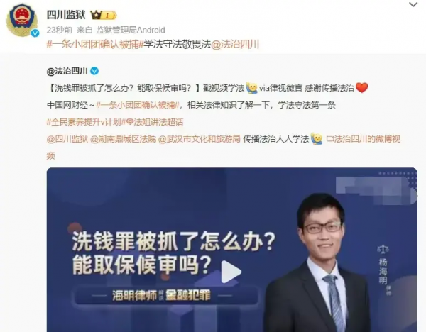 随着逮捕嫌疑确认,四川监狱官方账号带上"一条小团团确认被捕"的话题,评论到学法守法敬畏法,官方直接发声,可见事情的严重性。