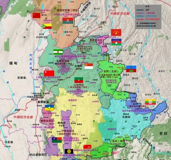 另外,从南、北掸邦军的名字可以看出,这两支民地武过去应该属于同一支武装力量。1971年缅甸"掸邦进步党"成立了下属武装"掸邦军",但之后因国际形势变化,掸邦军分化为两派,其中一支融入了大毒枭坤沙的残部"蒙泰军",形成了今天的"南掸邦军",另一支则仍是掸邦进步党下属的"北掸邦军"。