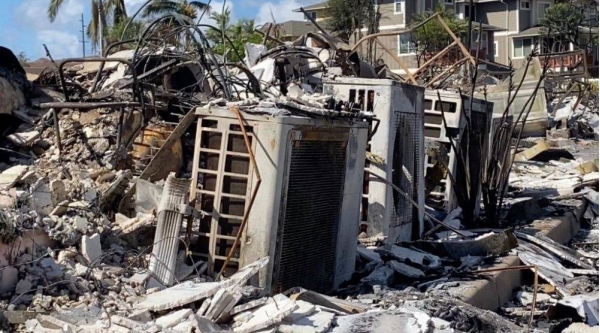 这是8月14日在美国夏威夷州毛伊岛拉海纳拍摄的野火烧毁的残骸( 图片来源:新华社)