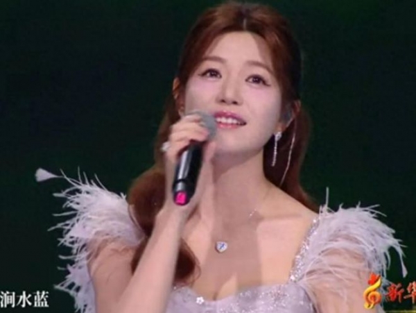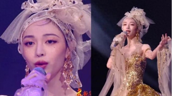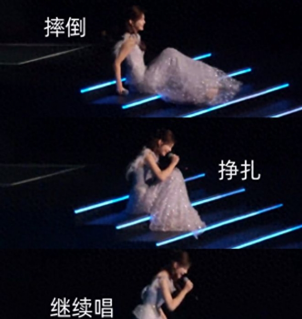演唱中还有个小插曲,就是陈妍希一不小心踩到裙摆在舞台上摔倒,即使导播立刻将镜头切成远景,还是明显看到她直接坐在了台阶上。可她马上笑着站了起来,继续演唱。