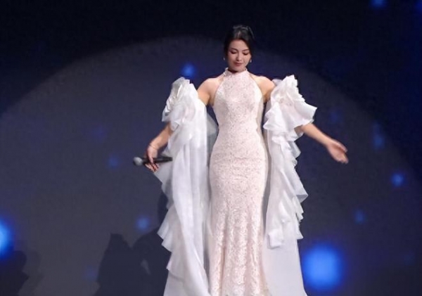 当她一身白色蕾丝拖地鱼尾裙出场,雍荣闲雅,仪态大方,浑身东方韵味的同时,好身材也一览无遗。