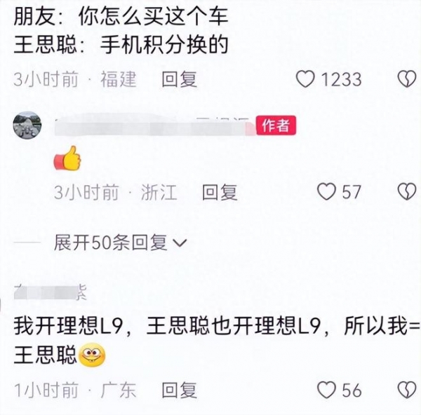 网友们纷纷调侃,称终于能够与王思聪开同款车了。有人还写成了段子,朋友:你怎么买这个车?王思聪:手机积分换的。