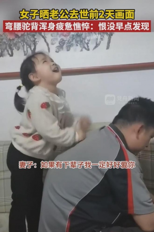 8月11日,山东,女子晒丈夫离世前两天画面,驼背弯腰满脸憔悴疲惫的视频引发关注,妻子懊悔道,恨自己没早点发现。