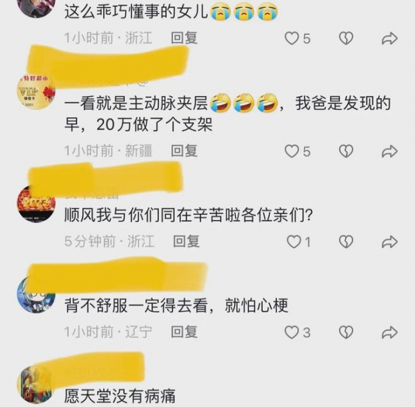 对于女子的分享,网友议论纷纷,有网友说,视频中,女儿帮他捶背时,扭头看的眼神,真的感觉很疲惫。这个时候,家人要是多关心,叫他多休息,也许就没事了。