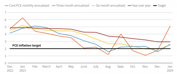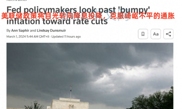3月1日,虽然最新公布的数据显示,美国1月核心PCE物价指数环比上升0.4%,创一年来最大的涨幅,但多个迹象表明,美联储正在投降,将目光转向降息,克服崎岖不平的通胀。美联储多位官员正在关注通胀的总体进展,他们表示这可能会为今年晚些时候的降息奠定基础。