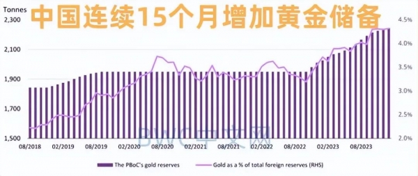 值得一提的是,自2022年11月以来,中国已连续15个月共增持约297吨黄金储备,使黄金储备总量达到2,245吨,连续发出黄金信号。
