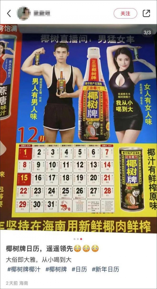椰树2024年日历上印着多位比基尼美女及猛男图片