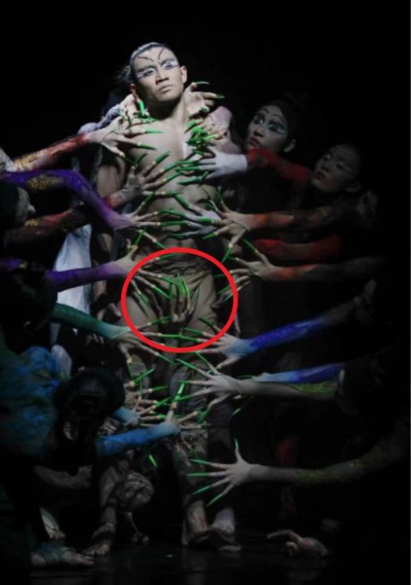 而在写真的里面有一张照片更是让网友们直呼辣眼睛,因为是男主角站在那里,所有女舞者用手遮挡着男舞者的身体,以及重要部位,而其中就有一只手抓住男舞者的私处,网友们都表示这样做真的是有点不雅了。