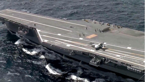 11月26日,网络上流传的一段航拍视频揭示了一个新的进展:福建号并没有立即进入海试阶段,而是进行了一项特别的测试--弹射小车实验。视频中,舰艏前方出现的巨大浪花,估计高度和直径都达到了惊人的数十米。这显然是由体型较大的物体冲击水面而产生的效果,很可能是福建号进行的弹射小车试验。