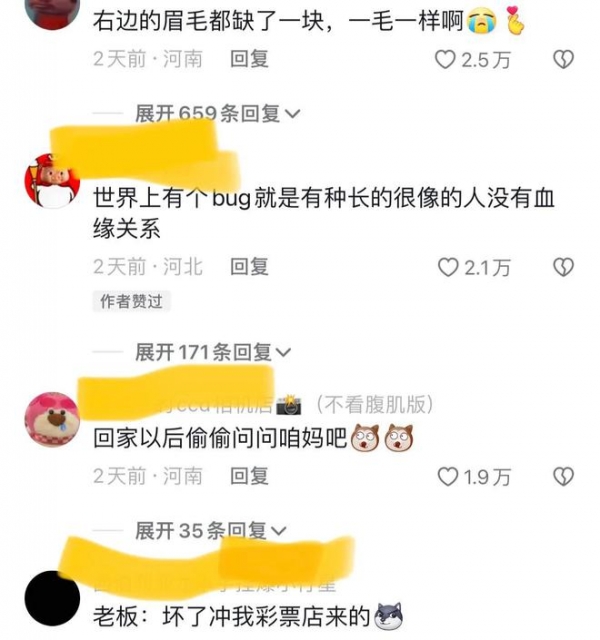后来男子也留言证实说,当天和女友去彩票店去玩,当时逛到大叔的店,女友发现两人长得特别像,建议两人合照一张。合照完后一看,两人脸上很多特征真的很一致。