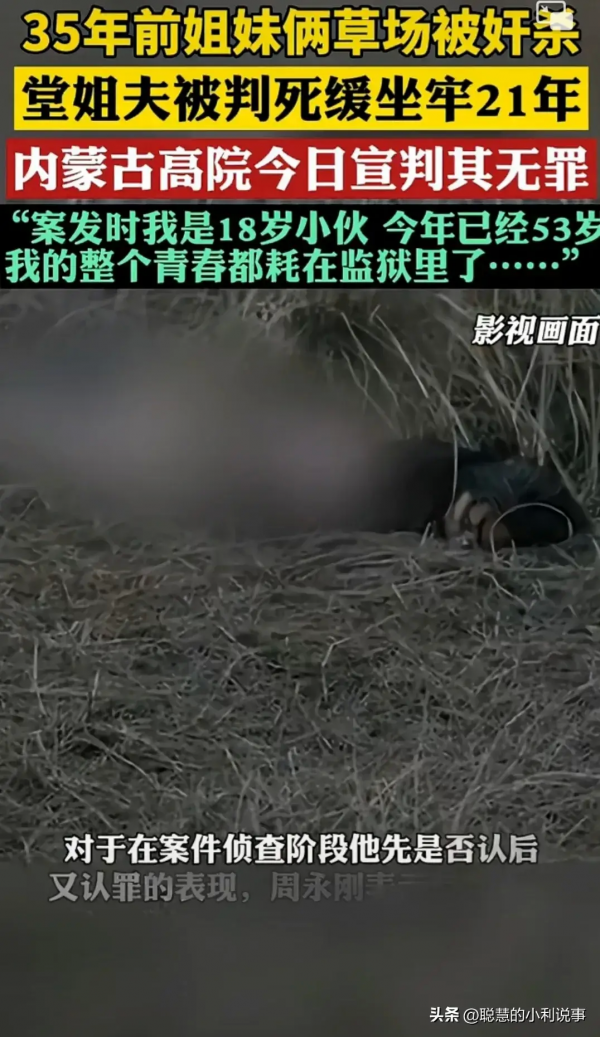 35年前姐妹俩草场被奸杀,堂姐夫被判死缓坐牢21年,内蒙古高院今日宣判其无罪。