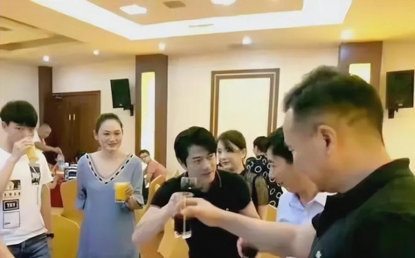 不仅如此,面对只比自己大2岁的方媛父亲,郭天王更是十分恭敬地弯腰鞠躬。敬酒时还非常遵守"晚辈"的礼节,酒杯低了半截。周围亲戚上前来搭话碰杯,他也是来者不拒,还时不时望向娇妻,确认她的情况。
