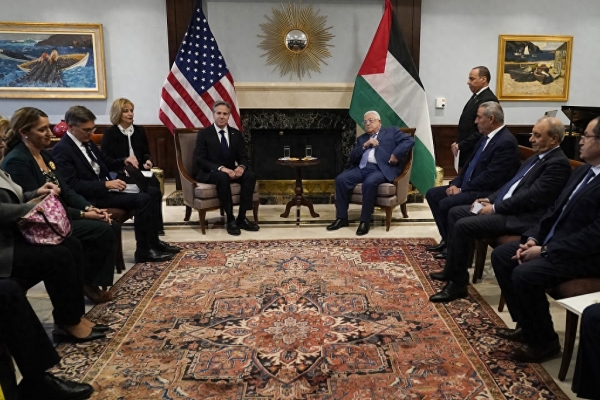 当地时间2023年10月17日,约旦安曼,美国国务卿布林肯会见巴勒斯坦总统阿巴斯。