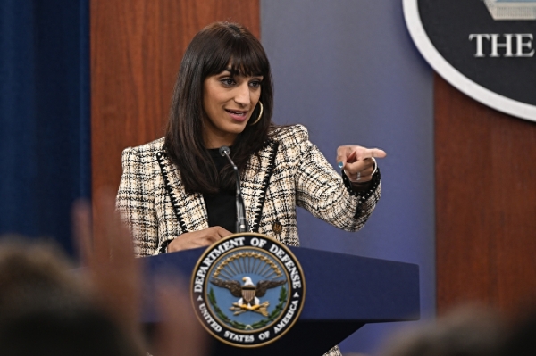 当地时间2023年10月17日,美国华盛顿特区,美国五角大楼副新闻秘书萨布丽娜·辛格在五角大楼举行的新闻发布会上发表讲话。
