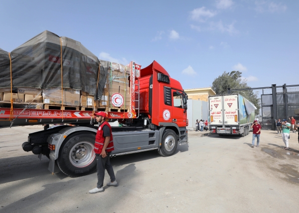 10月22日,人道主义援助车队通过拉法口岸从埃及进入加沙地带 图源:澎湃影像