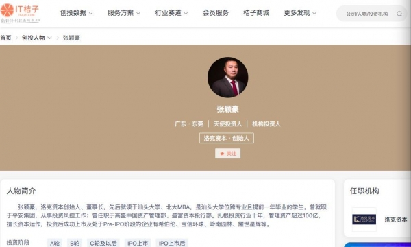尽管张颖豪未出现在深圳市前海洛克投资有限公司高管名录中,但在专注创投圈的平台IT桔子对创投人物的介绍中,张颖豪的头衔就是洛克资本的创始人。在一些创投新闻中,张颖豪也以洛克资本创始人的身份出现。