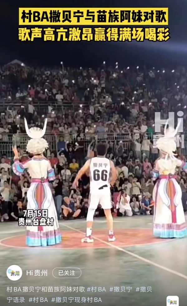 与此同时,贵州村BA也越来越火爆,就连撒贝宁也忍不住来到贵州台江县台盘村,感受一下村BA的火热氛围。