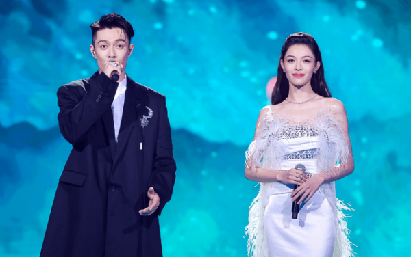肖战的造型一整个套装设计感十足,各种撞色、渐变还有墨点的小巧思,简直让人赏心悦目,搭配上偏分微卷的发型,一整个港风十足,而且还很能掌控舞台,收放自如,非常帅气啦。