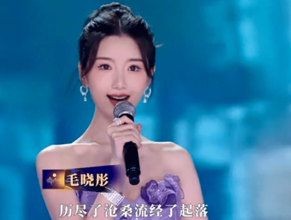 还有多位明星合唱啦,简单看一下一些人的造型,江疏影走公主风,裙子有珠光的感觉,毛晓彤妆容超精致,身着蓝紫色蓬蓬裙,胸口也小花,挺可爱的。